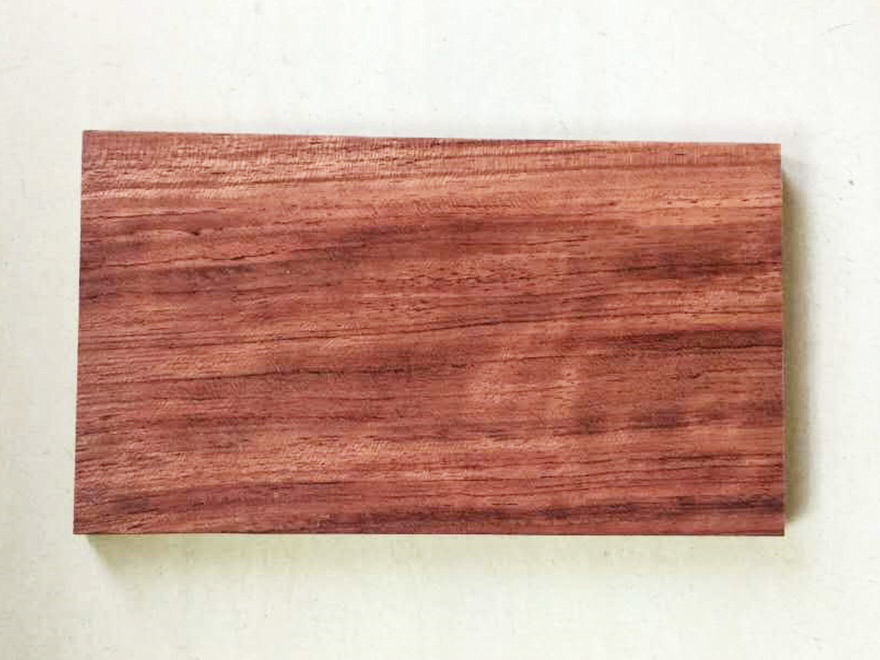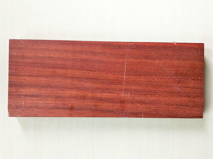 大喬木,高24~30M,直徑1.0M以上;具較大板根。本屬15種,分布于熱帶非洲,其中非洲有11種。只要從喀麥隆、赤道幾內(nèi)亞、加蓬進口,量較大。宏觀特征:散孔材。心材紅褐色,常具深色條紋,與邊材區(qū)別明顯。邊材奶油色,寬2~8cm。生長輪略明顯。界以輪界薄壁組織外,皮呈圓形小鱗片狀脫落,脫落后殘留卵圓形淺凹坑。樹皮受傷后會流出紅色膠質(zhì)。管孔稀少,不大。心材紅褐色帶紫色條紋。 木材材性具光澤;略具酸味。紋理直至略交錯;結(jié)構(gòu)細而均勻;質(zhì)量硬;強度高;干縮大。加工容易,刨切、車旋、握釘、油漆以及膠黏性能均好。耐腐,抗白蟻。干燥較快,無缺陷。氣干密度0.88~1.10g/cm3。 木材用途適用于豪華家具、刨切薄木、細木工、裝飾單板、地板、雕刻、生活器具等。